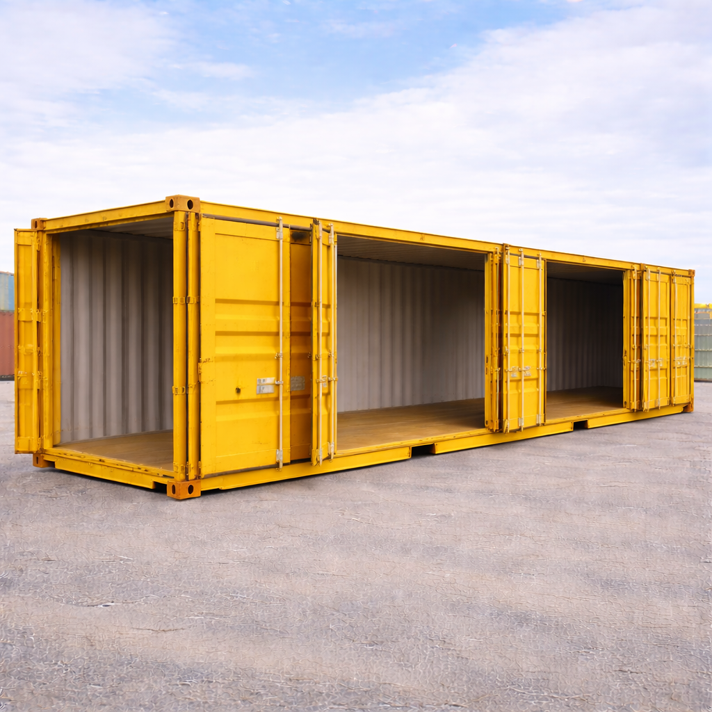 Neuer 40 Fuß Open Side Seecontainer mit seitlicher Komplettöffnung – ideal, wenn Sie Paletten, Maschinen oder sperrige Güter schnell be- und entladen möchten. Robust, wetterfest und perfekt als Lagercontainer für Baustelle, Industrie oder Handel. Auf Wunsch mit Lieferung im Rahmen vom Container Verkauf Deutschland verfügbar.